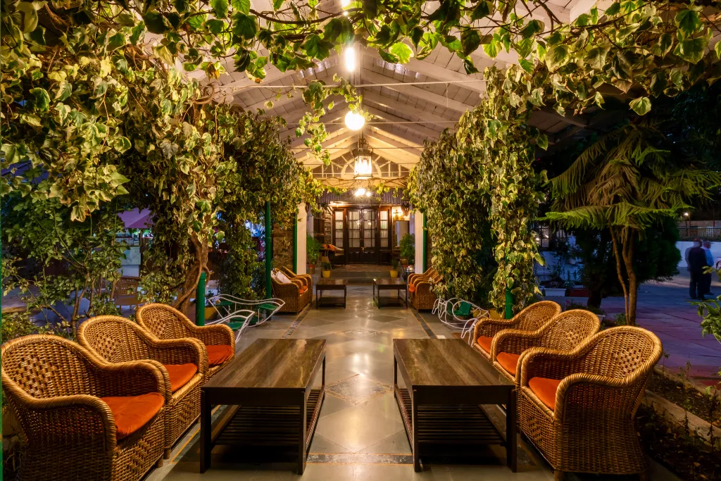 Enjoy a peaceful retreat in our outdoor seating areas, designed purely for relaxation. While there’s no scenic view, the charming heritage aura of the hotel makes it a perfect spot to unwind, have a quiet conversation, or simply enjoy a moment of calm in a classic, elegant setting.
