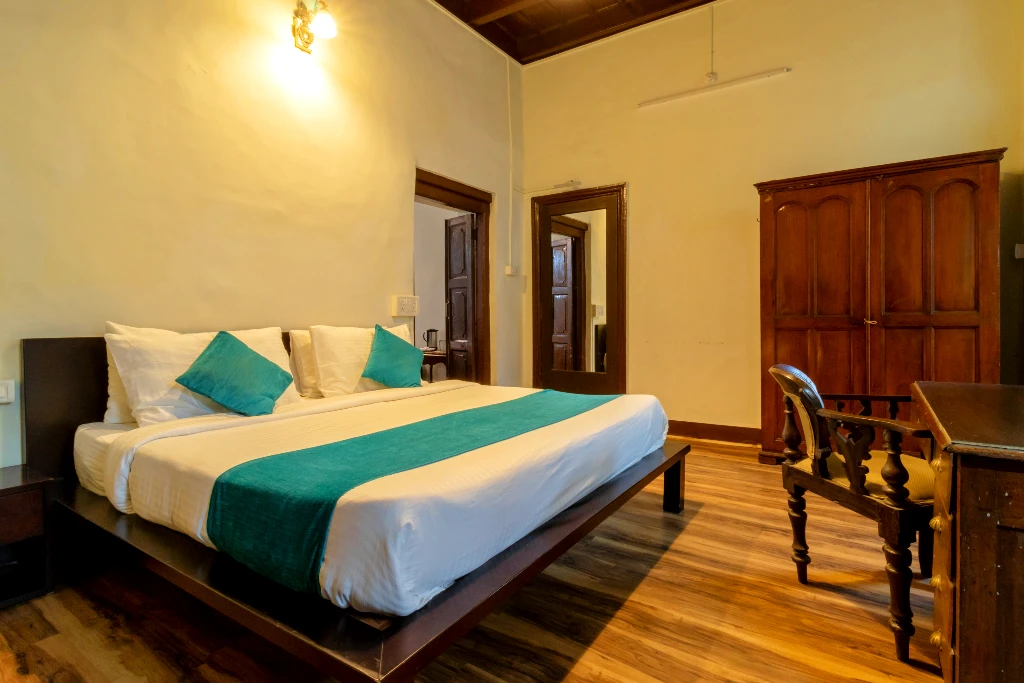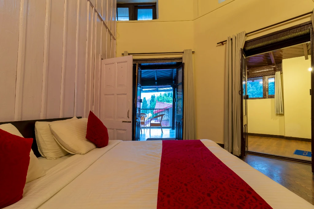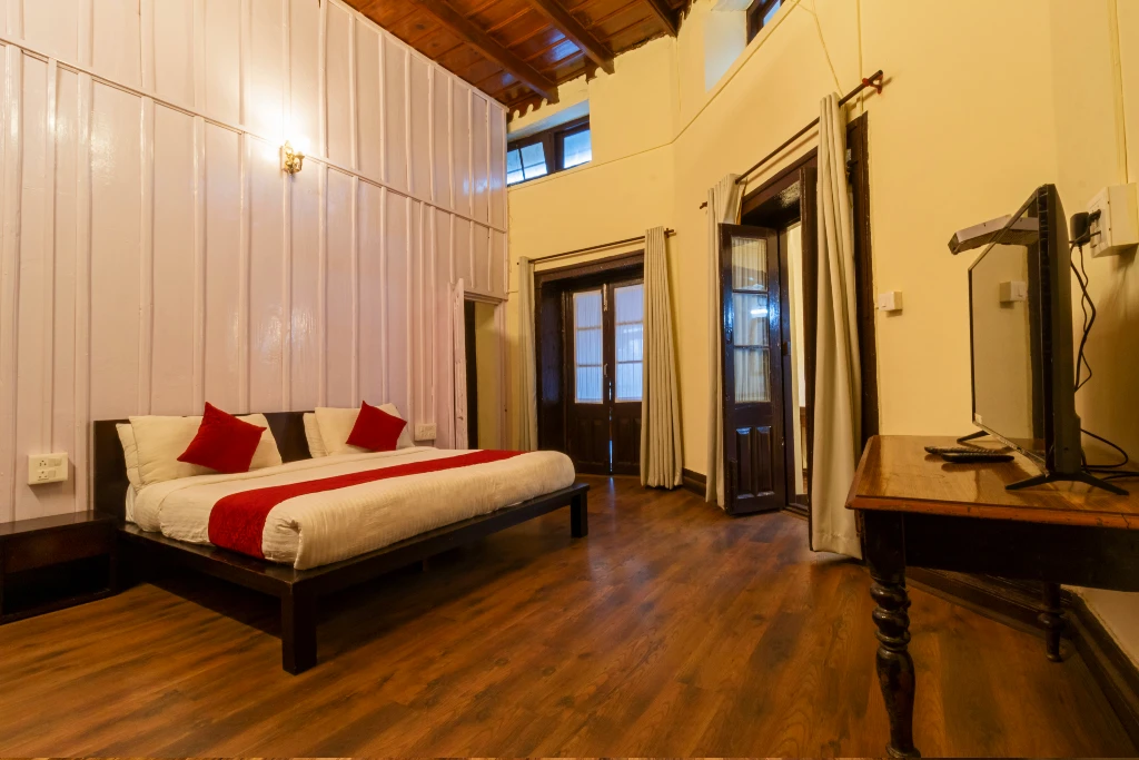 ( 11)Perfect for couples or solo travelers, our Deluxe Rooms combine style and comfort. Adorned with stately wooden furniture and accented by vibrant red hues, these rooms radiate warmth and energy. With all essential amenities in place, they provide the ideal setting for a cozy and rejuvenating stay.