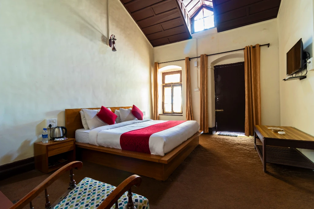 ( 01)Our Royal Room is the most exclusive room type at Royal Heritage Hotel. Spacious and elegantly designed, it offers a king-size bed, ample seating, and beautiful views—perfect for families looking for comfort and privacy during their Nainital stay.